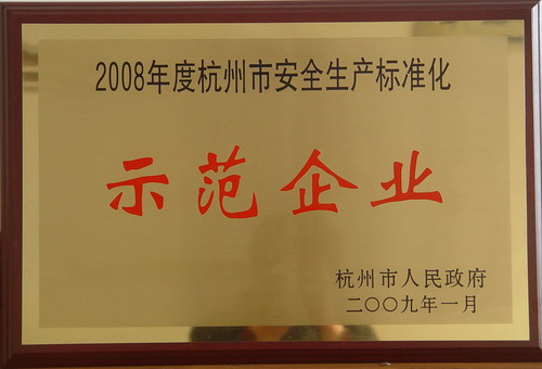 公司于近日獲授“杭州市安全生產(chǎn)標準化示范企業(yè)”銅牌