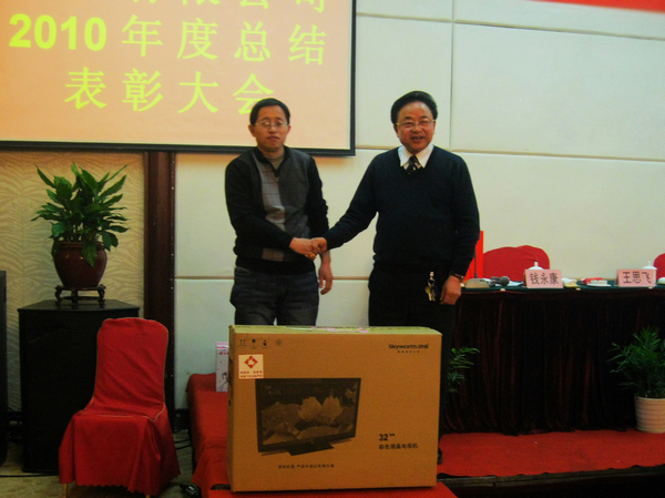 會后,舉行了盛大的晚宴。晚宴上的抽獎活動,獎品十分豐富,龔政堯先生抽出特等獎彩電并與獲獎員工親切合影。本次大會,在團結(jié)融洽的氣氛中,完滿結(jié)束。