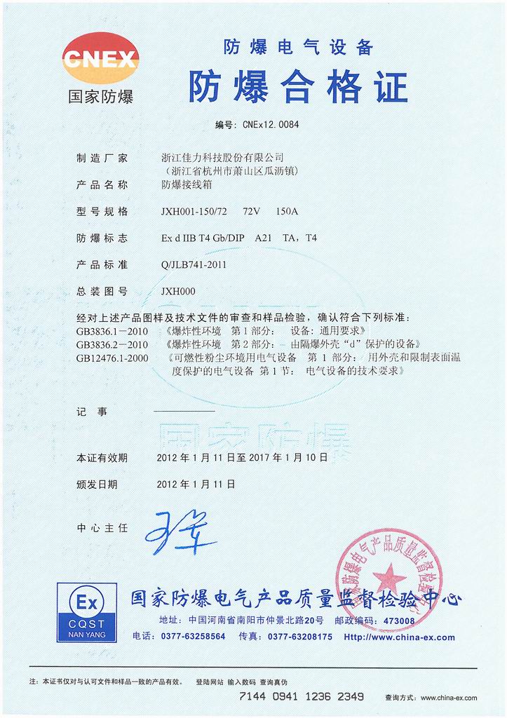 防爆證書>>詳細(xì)信息