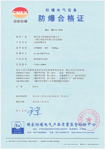 7. 適合爆炸性環(huán)境1、2區(qū)使用,如石化、軍工、制藥、油漆等行業(yè)的爆炸性環(huán)境的倉庫等場所的堆垛作業(yè)。